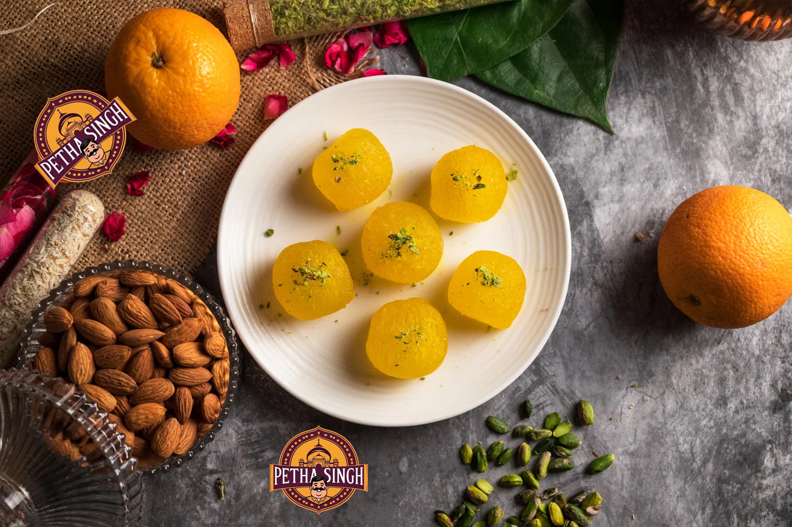 Santra Petha is a flavorful blend of Agra’s traditional petha infused with the sweet and tangy essence of fresh oranges (santra). With its vibrant color, juicy texture, and citrusy aroma, it offers a refreshing twist to the classic sweet.