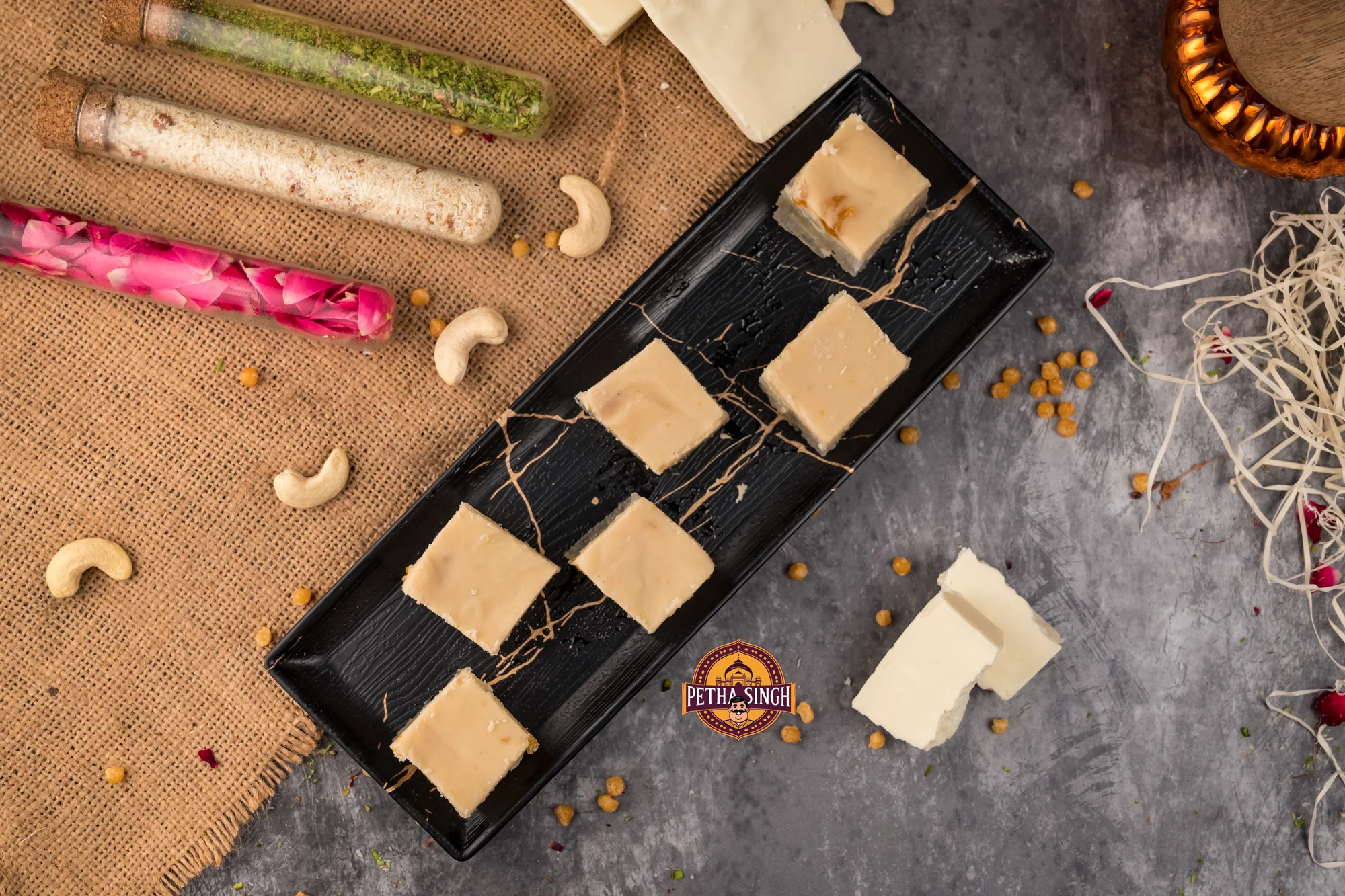 Butter Barfi Petha is a rich and creamy fusion sweet that combines the soft, juicy texture of traditional petha with the smooth, melt-in-the-mouth flavor of butter barfi. Infused with buttery goodness and a hint of cardamom, it offers a decadent twist on the classic Agra delight.